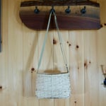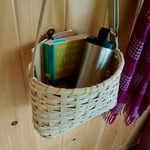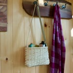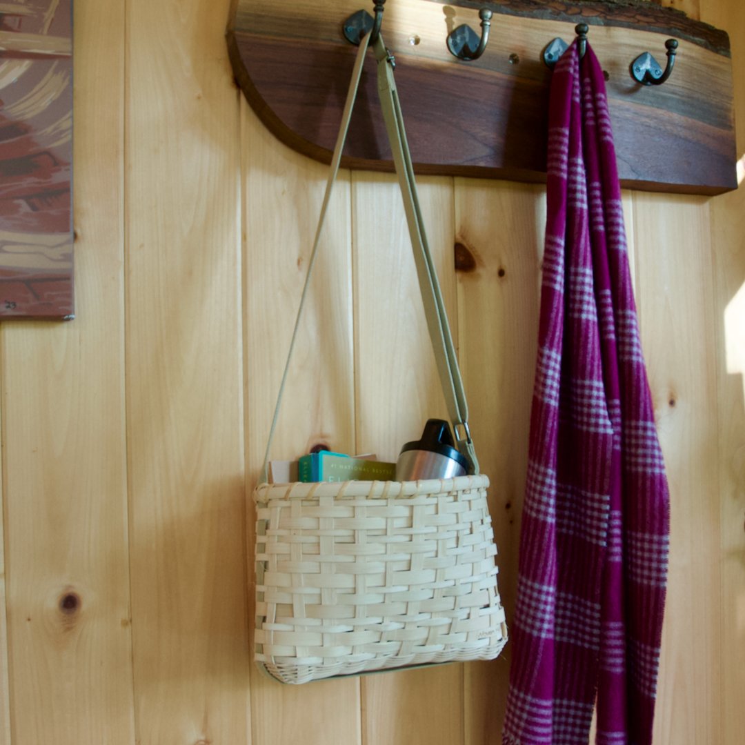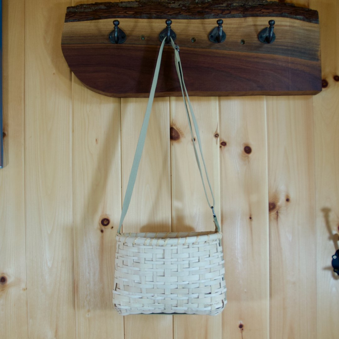 Part of the Hemlock Collection, this hand-woven cross body tote is crafted from natural reed, hand-dyed with hemlock bark for its warm tones and unique shifting patterns inspired by Algonquin Park's hemlocks. It features an adjustable shaker tape strap, ideal for carrying your daily essentials. Approx. 11" x 7" x 9".