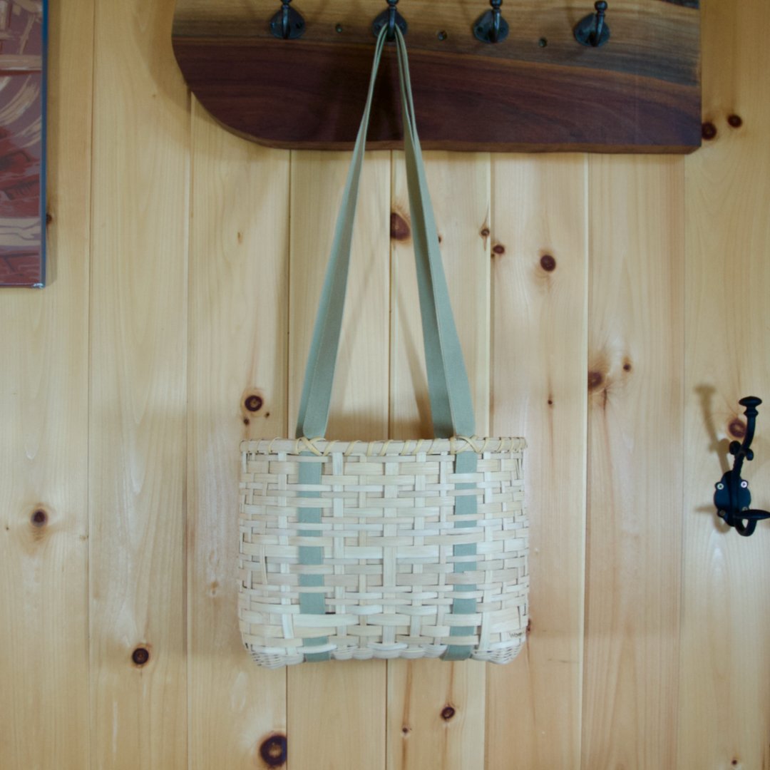 This large, hand-woven tote from our Hemlock Collection is crafted from natural reed, beautifully hand-dyed with hemlock bark to achieve its warm, natural tones and unique shifting patterns inspired by Algonquin Park's hemlocks. Featuring shaker tape straps, it's perfect for market hauls and everyday shopping. Approx. 14" x 10" x 11".