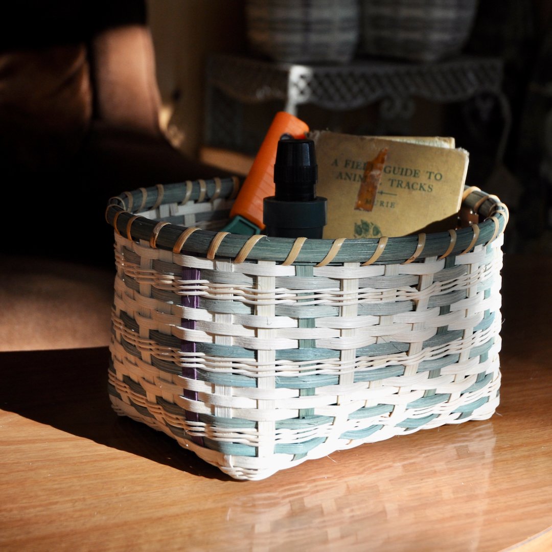 The Gradient Large Organizer is hand-woven from natural reed and meticulously hand-dyed to feature a hunter green gradient pattern with plum accents. Its design showcases softly blended gradients with bold accents, crafted using a stake and strand construction and twined accents to highlight depth and detail through contrasting techniques and textures. It is perfect for ample storage, corralling larger items and gear, or organizing craft supplies with a touch of unique artistry. Approx. 11" x 9" x 6".