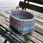 The Horizon Large Organizer is hand-woven from natural reed and features a turquoise speckled horizon with sunrise-inspired accents. Its intricate design, crafted with varying widths of reed and distinct gradients, beautifully brings the serene artistry of dawn to life. This large organizer is perfect for ample storage, decluttering your space, or displaying cherished items with a touch of unique artistry. Approx. 9 ½" x 11 ½" x 5 ½".