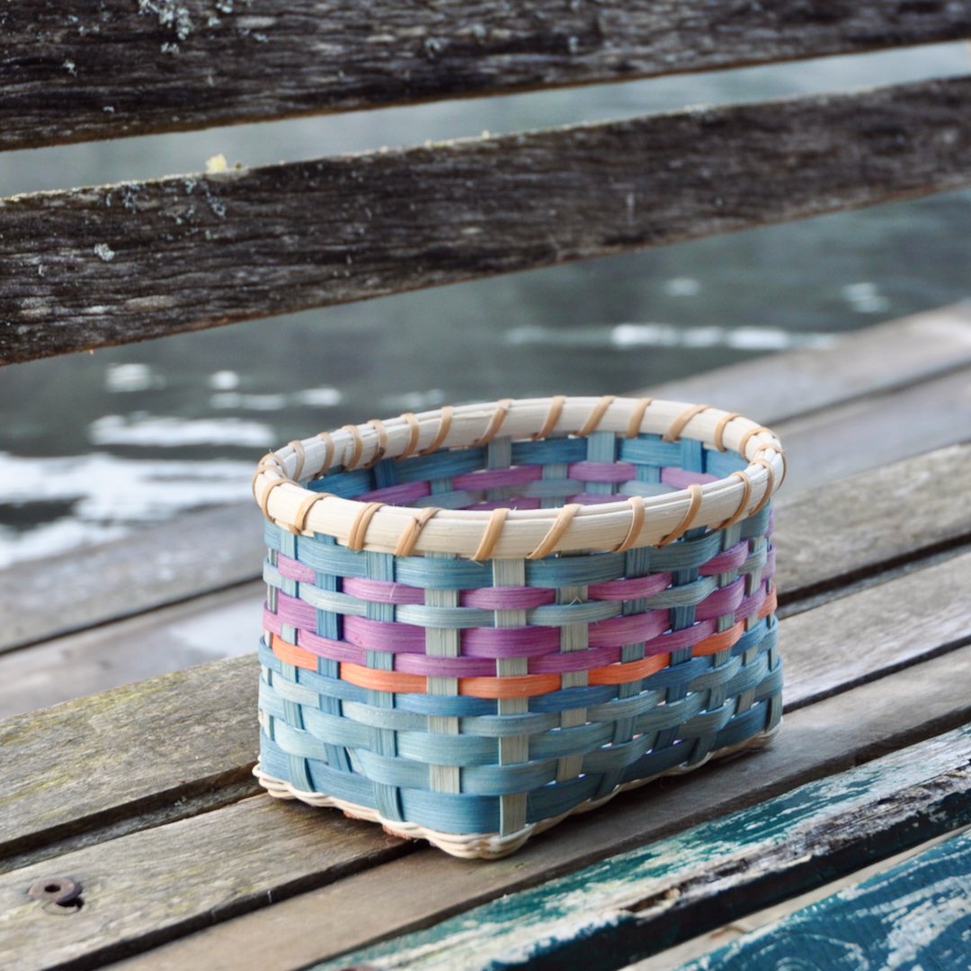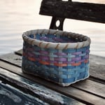 The Horizon Medium Organizer is hand-woven from natural reed and features a turquoise speckled horizon with sunrise-inspired accents. Its intricate design, crafted with varying widths of reed and distinct gradients, beautifully brings the serene artistry of dawn to life. This medium organizer is perfect for versatile storage on shelves, desks, or in any space needing a touch of unique artistry. Approx. 7 ½" x 8 ½" x 4".