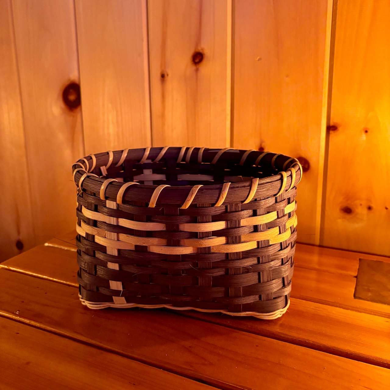 A perfectly sized solution for containing small items and creative essentials. This basket is ideal for a nightstand or desk, keeping your phone, keys, and wallet neatly corralled. It's also perfect for stashing small crafting tools or a collection of pens. The clean, modern lines of the weave and the subtle, tea-stained accents create a serene aesthetic, adding a touch of quiet elegance to any space.